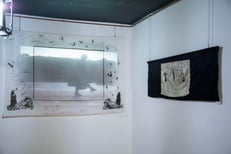 La exposición se compuso de nueve obras de diversos tamaños y técnicas, entre las que se incluyen trabajos textiles, fotografía, audiovisual y elementos naturales. Algunas piezas se presentan montadas en marcos, mientras que otras están hiladas entre sí, creando una narrativa visual integrada que mezcla texturas, colores y técnicas en un único discurso narrativo y estético.